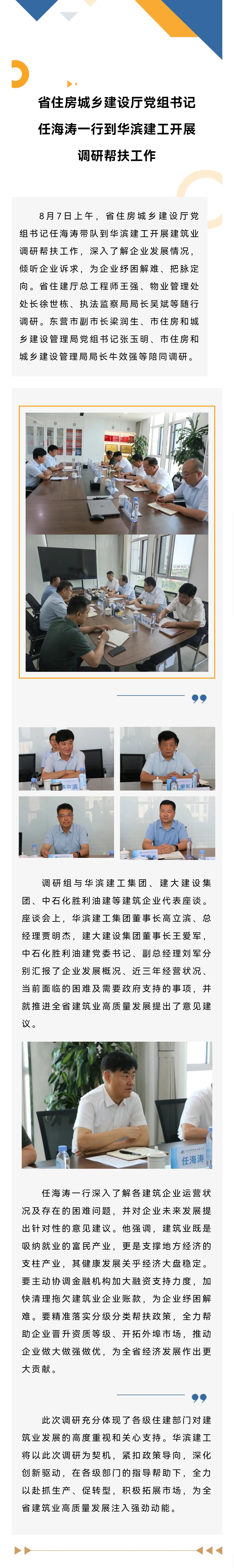 【華濱新聞】省住房城鄉建設廳黨組書記任海濤一行到華濱建工開展調研幫扶工作