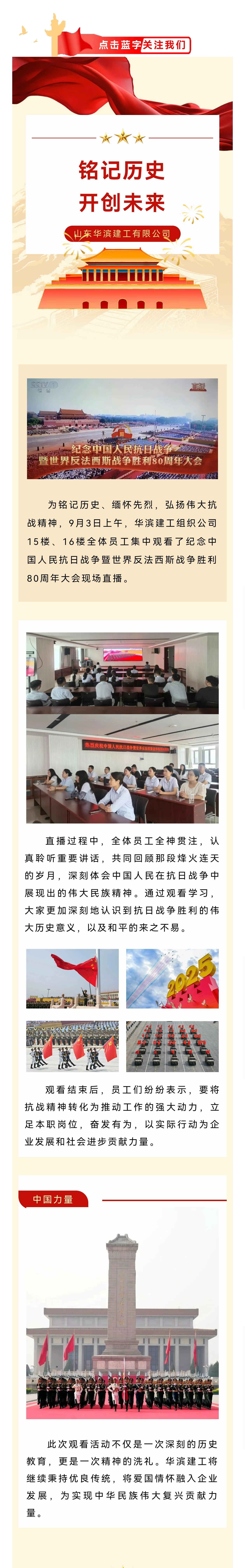 【華濱新聞】華濱建工組織員工觀看紀念抗戰勝利80周年大會直播
